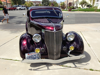 1936 Ford 3 window coupé. Show or drive. Candy apple superb paint just look at the reflection of the clouds and me taking the shot, absolutely gorgeous gloss finish. 4" chop, 82 ford V6, C4 trany, 8" rear end, Built years ago so well sorted, Hood Louvers, custom exhaust, replacement side windows, Rebuilt front end , Complete brake job, new shocks, panhard bar, radiator redo with AA over flow tank, added mirrors, new water pump, new fuel pump, Etc vin # 0RE13103F.