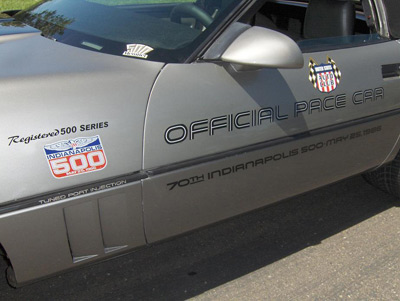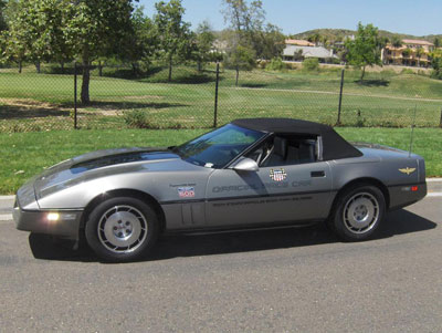 1986 Corvette Pace Car.  A very, very nice example having covered on average only 4,500 miles per year.  It has all the bells and whistles, stickers, new German cloth convertible top, fantastic stereo, very clean throughout.