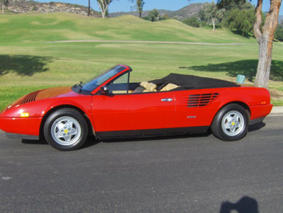 1986 Ferrari Mondial 3.2 cabriolet. Red / Tan leather, Only 59,486 miles from new. ( averaging ONLY 2,380 miles per year. Big belt service only a few thousand miles ago. Mechanically very good drives and looks good. Seating for 4 makes allot of fun trips. 5 speed, A/C, enjoy life take your top down. WOW a real Ferrari for only $19,950. YES $19,950. vin # 59787.