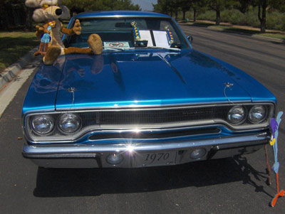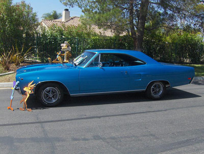 ORIGINAL CAR NUMBERS MATCHING 383 ci 335 HP V8 Roadrunner Engine with A727 Torqueflight Automatic Transmission. Gorgeous B5 Blue Paint. NOTABLE OPTIONS include Code Correct Power Steering and Air Conditioning & Chrome Fender Well and Rail Pieces. Hood mounted turn signals & Passenger side mirror. Galen Govier Decoded & Registered with Documentation Magnum 500 Wheels with BF Goodrich Radials Multiple Car Show Trophies and Photos Available 100s of Photos Available at all stages of Restoration 4 Foot Stuffed Wile E. Coyote, Plaques, Printed Docs, Owners Handbooks, Wood Roadrunner & Coyote replicas for Car Show staging goes with this CAR SHOW WINNER! Upgrades at Restoration include a Edelbrock 750 CM Carburetor & Edelbrock DP4P Aluminum Intake Manifold. Original Holley and Intake go with the Car. VIN # RM23NOG185702